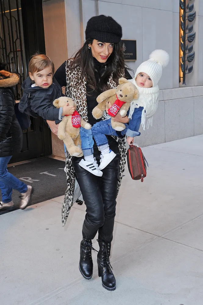 Амаль и Джордж Клуни из тех пар, для которых верен принцип «счастье любит тишину»: супруги не только оберегают от всеобщего внимания свою личную жизнь, но и почти не показывают детей Эллу и Александра. Однако вчера папарацци повезло: они сумели запечатлеть Амаль с близнецами на руках на выходе из нью-йоркского отеля. На фото Александр, чья мимика достойна особого внимания, как две капли воды похож на своего звездного папу, а крошечная Элла в белой шапке с пушистым помпоном и джинсовой двойке явно будет заимствовать дизайнерские вещи из маминого гардероба. А совсем скоро чета Клуни вновь станет родителями — правда, крестными: если слухи подтвердятся, то они будут крестить первенца принца Гарри и Меган Маркл.
