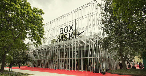 Box MSK построен по оригинальному архитектурному проекту бюро «Космос». Футуристичный стеклянный павильон вдохновлен индустриальной архитектурой Москвы и воплощает идею технологических инноваций. Box MSK вмещает футбольную и баскетбольную площадки и студию Nike Training Club. Площадка также станет базой бегового клуба Nike Running Club. Спортивный центр будет функционировать круглый год, и, по прогнозам Nike, только за это лето его посетит более десяти тысяч человек: занятия бесплатны и подходят для любого уровня подготовки. Более того, многофункциональный Box MSK планирует принимать у себя выставки, лекции и мастер-классы. Уже сейчас здесь можно разработать собственный дизайн футбольных джерси, кастомизировать форму национальных сборных или кроссовки.