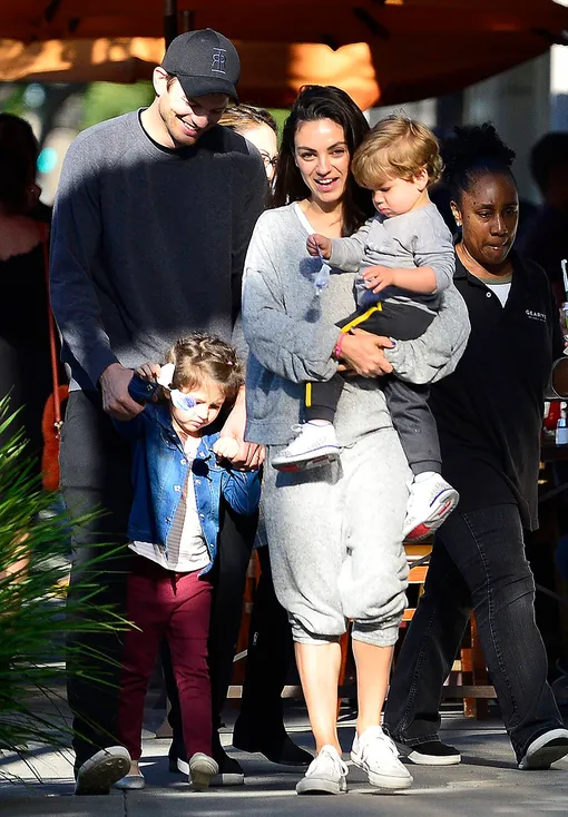 Мила Кунис и Эштон Кутчер с детьми отправились на семейный ланч в Беверли-Хиллз