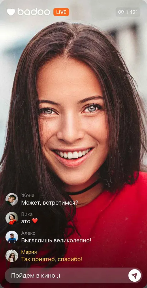 Badoo делают ставку на реальное общение и в тестовом режиме запускают функцию Live Stream. Решение отказаться от привычных свайпов сервис принял после опроса 5 000 россиян. 74 % молодых людей в возрасте от 18 до 30 лет ждут от приложения реальных встреч: листать профили, чтобы поднять себе самооценку, уже неинтересно. 68 % респондентов считают, что свайпы вправо и влево и даже мэтчи — бесполезный инструмент для знакомств. Россиянам проще пойти на свидание после живого общения. Узнать ближе возможного партнера им как раз поможет Live Stream. Несмотря на то что пользователи дейтинг-приложений не привыкли сразу видеться в реальной жизни, большинство опрошенных готовы вести прямые трансляции у себя в профиле.