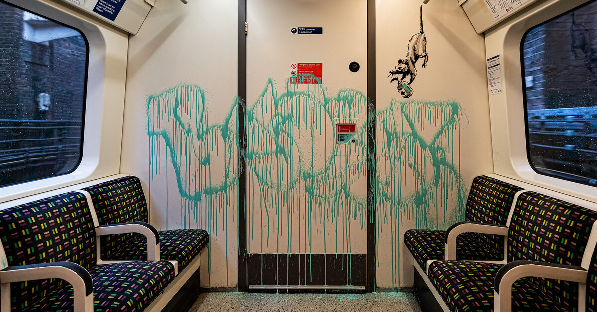 Художник показал в Инстаграме (Социальная сеть признана экстремистской и запрещена на территории Российской Федерации), как создавал свою работу. Он спустился в метро в респираторе и защитных очках, скрывающих лицо. Бэнкси притворился работником подземки, проводящим дезинфекцию, но вместо особого раствора в его баллонах оказалась синяя краска.