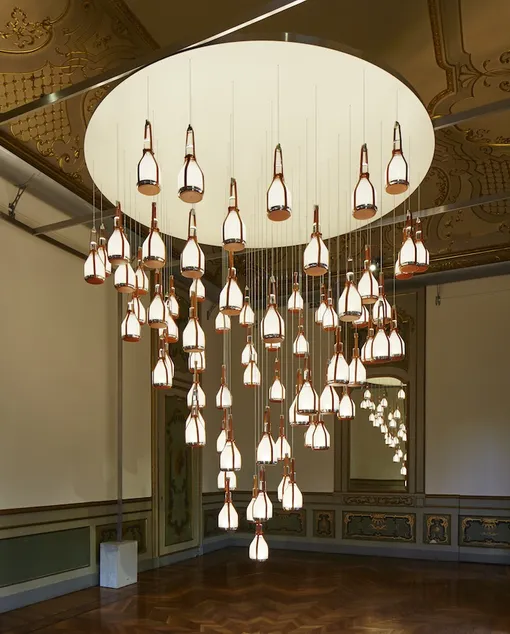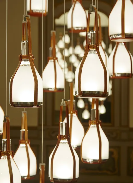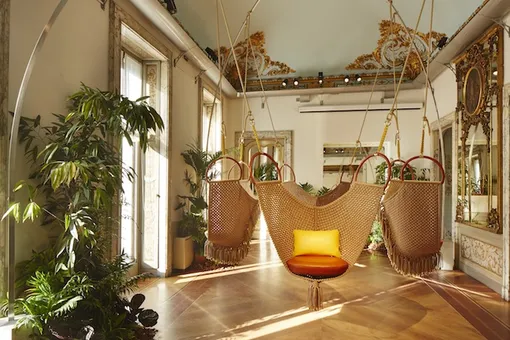 Коллекция Louis Vuitton для домашнего обихода постоянно дополняется новыми концепциями и на сегодняшний день насчитывает 16 предметов, выполненных в единственном экземпляре, ограниченной серией или в качестве прототипа. На выставке в историческом палаццо Palazzo Bocconi модный Дом, помимо знаковых моделей, представил свежие поступления: шезлонг, мотивом создания которого послужила тканая лента в чемоданах Louis Vuitton, кресла-качели, перекликающиеся с отделанными расстрочным швом ручками сумки Keepall, и люстру с конусообразными лампами, напоминающими сумку Noe.