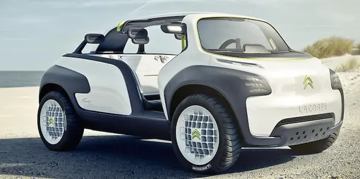 Автомобиль с первого взгляда напоминает о спортивной одежде Lacoste. Сидения похожи на футболки-поло, колеса – на мячи для гольфа, а сама машина имеет нечто общее с кроссовками. Самым необычным элементом модели, концепт которой был представлен еще в 2010 году, стала надувная крыша – надежная защита пассажиров от осадков и ветра.
