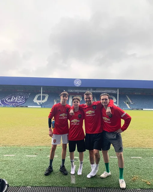 У сыновей Дэвида Бекхэма – 13-летнего Круза, 16-летнего Ромео и 20-летнего Бруклина – очень насыщенная жизнь: они учатся, путешествуют, посещают различные светские мероприятия. Однако папа, бывший футболист, всегда найдет время для их тренировки. Так, вчера Виктория Бекхэм выложила у себя в Instagram (Социальная сеть признана экстремистской и запрещена на территории Российской Федерации) фото, на котором ее супруг и трое сыновей стоят в спортивной форме на футбольном поле Queens Park Rangers. Позже снимками поделились и сами участники игры. Похоже, семейный день удался!