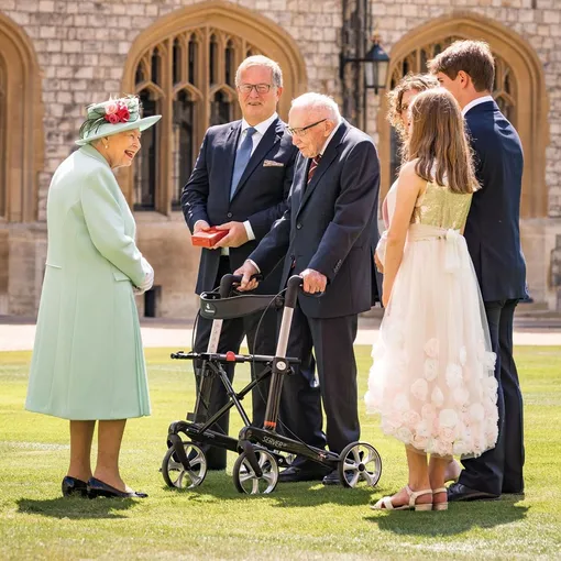 Стоит отметить, что это было первое официальное мероприятие с начала пандемии, в котором принимала участие Елизавета II. Чтобы свести к минимуму риск передачи вируса, церемония проходила на открытом воздухе на территории Виндзорского замка. Расстояние между королевой и ветераном было ровно таким, чтобы монарх могла коснуться плеч Мура мечом.