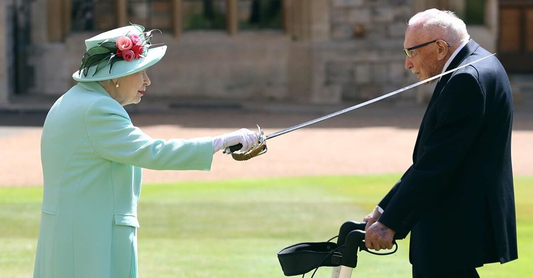 Королева Елизавета II посвятила в рыцари 100-летнего ветерана Второй мировой войны Тома Мура. . Бывший военный стал известен после того, как в марте 2020 года начал сбор пожертвований для Национальной службы здравоохранения — в обмен на пожертвования ветеран, восстанавливавшийся после операции на тазобедренном суставе, пообещал 100 раз обойти свой сад до своего столетия. К своему дню рождения Муру удалось собрать более 32 миллионов фунтов стерлингов.