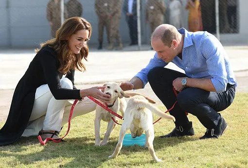 Фото дня: Кейт Миддлтон и принц Уильям играют с армейскими псами на встрече в кинологическом центре