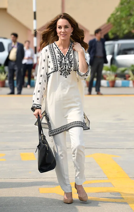 Герцог и герцогиня Кембриджские продолжают свое путешествие по Пакистану — и ежедневно в сети появляются все новые и новые атмосферные кадры из этой поездки. Сегодня супруги прибыли в Исламабад — и из самолета Кейт Миддлтон вышла в свободной тунике пакистанского бренда ÉLAN, дополненной светлыми брюками в тон.