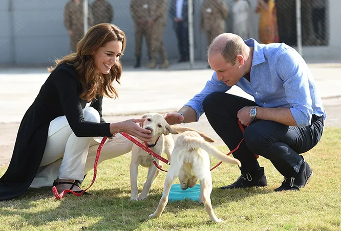 Фото дня: Кейт Миддлтон и принц Уильям играют с армейскими псами на встрече в кинологическом центре