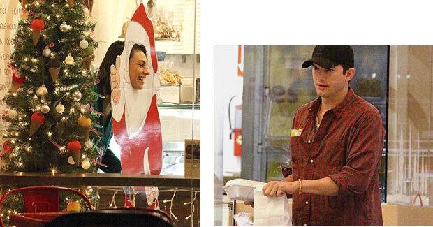 Младшему ребенку Милы Кунис и Эштона Кутчера — сыну Дмитрию — недавно исполнилось 13 месяцев, а его родители, как оказалось, и сами не хотят расставаться с детством. Мила и Эштон устроили себе предновогоднее свидание в одном из торговых центров Лос-Анджелеса: парочка ела мороженое, делала фото в тантамареске с Санта-Клаусом, выбирала подарки и со смехом заказывали еду в местных фастфуд-ресторанах. На рождественский лад настраивал и изумрудный свитер Кунис с золотыми пайетками от Wildfox, который явно пришелся по душе Кутчеру — в общем, сладкая парочка!
