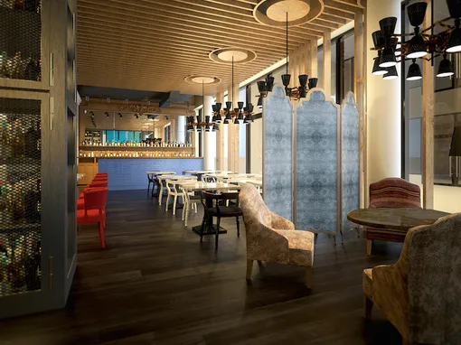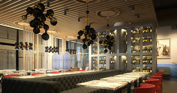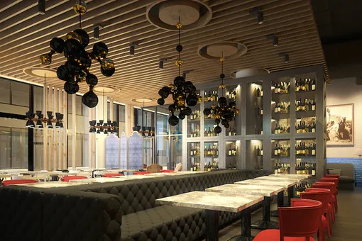 Карта меню изобилует как итальянской классикой, так и привычными русскими блюдами: борщ, оливье и торт «Медовик» представлены наряду с несколькими разновидностями ризотто, тальятелле и вителло тоннато. Отдельный раздел занимает пицца – итальянский пиццайоло Стефано Просперини готовит «Маргариту», «Капричозу», пиццу с соусом маринара, с лососем, а также вегетарианский вариант, что придется весьма кстати после окончания масленичной недели. Пространство ресторана рассчитано на 85 гостей, а планировка с открытой кухней позволяет наблюдать процесс приготовления практически из любой точки зала.