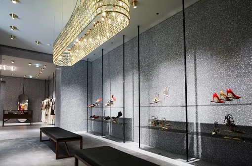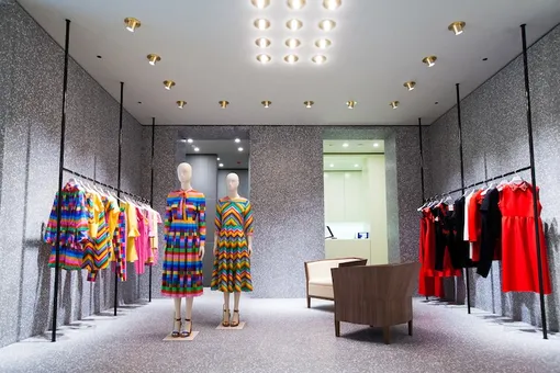 Модный Дом Valentino открыл новый российский бутик, занявший просторное одноэтажное здание в «Барвихе Luxury Village» площадью более 400 квадратных метров. Интерьеры магазина выполнены в монохромном ключе – элегантные залы с мебелью и элементами декора разнообразных оттенков черного и серого становятся превосходным фоном для фирменного красного цвета Valentino. Эбеновое дерево, черный мрамор, а также другие ценные материалы, использованные в отделке, являются своего рода оправой для бриллианта: дизайн способствует тому, что каждый предмет гардероба по эскизам Марии Грации Кьюри и Пьерпаоло Пиччоли выглядит еще эффектнее. К услугам посетителей, не устоявших перед этой красотой, в задней части бутика оборудованы отдельная VIP-зона, а также комнаты для примерки и подгонки одежды.