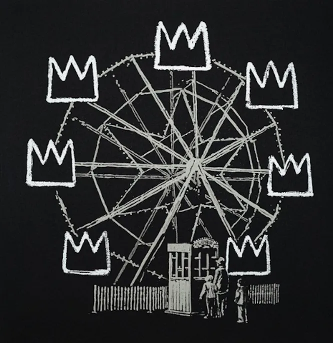 В своей новой работе один из самых известных в мире граффити-артистов отдает дань уважения легендарному пионеру стрит-арта Жан-Мишелю Баскии. Одновременно с этим, Бэнкси подчеркивает его коммодификацию и, выставляя работу на аукционе, превращает творчество художника в товар, который можно купить за деньги.