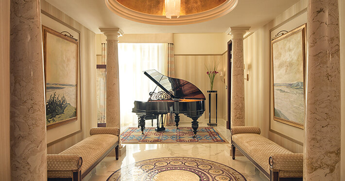 Свое 140-летие «Гранд Отель Европа» празднует лишь в следующем году, однако готовиться к наступлению важной даты было решено заранее. В преддверии торжественного события в гостинице открылось пять новых люксов, названных в честь деятелей искусства XX века, – Казимира Малевича, Василия Кандинского, Александра Архипенко, Лазаря Лисицкого и Александра Родченко. Каждый номер занимает площадь несколько десятков квадратных метров: большая гостиная, спальня, две ванных, гардеробная – интерьером каждой комнаты занималось бюро американского дизайнера Адама Тихани. Кроме того, теперь «Гранд Отель Европа» может похвастаться еще и новыми апартаментами с тренажерным залом, столовой и сауной. Само собой, ко всему вышеперечисленному прилагается отличный вид на главные достопримечательности Северной столицы, – а это дорогого стоит!