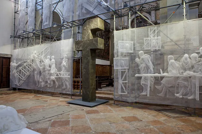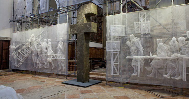 Московский художник Гриша Брускин уже участвовал на Венецианской биеннале в 2015 году с выставкой интерактивных шпалер «Алефбет: алфавит памяти» и экспозицией искусственных руин «Коллекция археолога». В том же году арт-группа Recycle, художники Андрей Блохин и Георгий Кузнецов, показала проект Conversion о жизни человека в мире современных технологий. Для Саши Пироговой, выпускницы Школы фотографии и мультимедиа имени Родченко, предстоящая биеннале станет дебютом. В прошлом году в Манеже состоялась ее первая персональная выставка «Фокусы» в жанре видеоарта. Работы российских художников будут посвящены «Театру жизни и смерти».