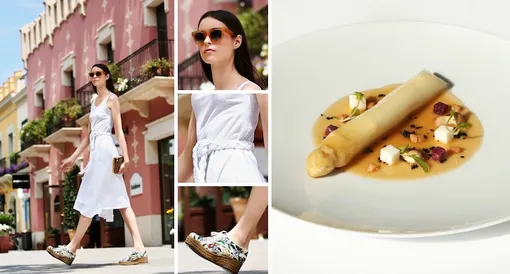 В недавно открывшемся испанском аутлете La Roca Village разработали концепцию Fashion Meets Food, которая объединяет гастрономию и моду, доказывая их схожесть. За первое отвечают Хавьер и Сержио Торрес – шеф-повара и владельцы местного ресторана Dos Сielos. За второе – блогер и любимица streetstyle-фотографов Таму Макферсон. По мнению идейных вдохновителей проекта, процесс кулинарии и создание новых образов довольно схожи между собой, а значит, их вполне можно объединить. Например, на мероприятии, посвященном запуску Fashion Meets Food, где братья Торрес создали десерт, идеально дополняющий образ Таму.