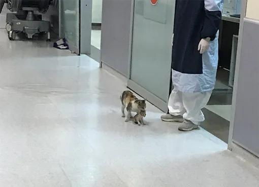 Кошка появилась в одной из местных больниц, неся в зубах маленького котенка. Удивленные очевидцы не растерялись и сразу же вызвали медиков. Бригада врачей окружила кошку и котенка — эти снимки облетели весь Instagram (Социальная сеть признана экстремистской и запрещена на территории Российской Федерации) и растопили сердца людей по всему миру.
