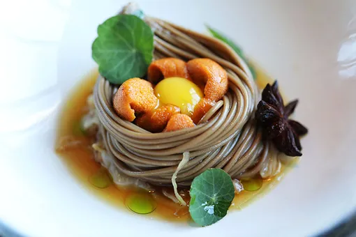 Каждый раз, когда в городе появляется Карло Кракко, в ресторане OVO, расположенном на первом этаже LOTTE Hotel Moscow, дела резко оживляются. Карло, как известно, обладатель двух звезд «Мишлен» и звезда итальянского кулинарного реалити-шоу «Адская кухня», а московский OVO - единственное его заведение за пределами Италии. Эмануэле Поллини, который рулит кухней в его отсутствие, тоже талантлив и харизматичен, а дегустационный сет, подготовленный командой звездного шефа, – это салат OVO с яйцом пашот, спагетти с лаймом, зеленым луком, кофе и тунцом бузональя и облепиховый десерт с йогуртом и руколой.