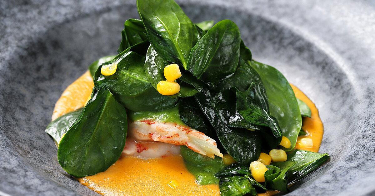 Его лаконичные, до гениального простые сочетания и необычные детали по-новому раскрывают сезонные продукты и традиционно летние вкусы. Среди позиций меню — сметана с юдзу к гребешкам в терияки, крошка грана падано в рикотте к зеленой спарже, семечкам и корну, сочный базиликовый соус и молодой стручковый горошек к тунцу – для сочности. Другие необычные решения шефа — замариновать брокколи в мисо и приготовить ее в печи и отварить кускус в томатной воде с оливковым маслом и подать с кремом из батата и моркови (блюдо выходит таким же основательным и вкусным, как стейк с обожженным топинамбуром и густым, ароматным и маслянистым «топинамбуровым» ганашем). И даже зелень Мухин легко превращает в десерт — обязательно попробуйте сироп из трав и засахаренный шпинат с рикоттой.