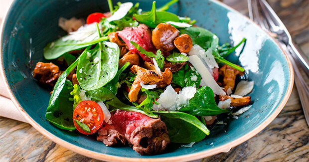 Салат с ростбифом и лисичками в ресторанах Il Forno