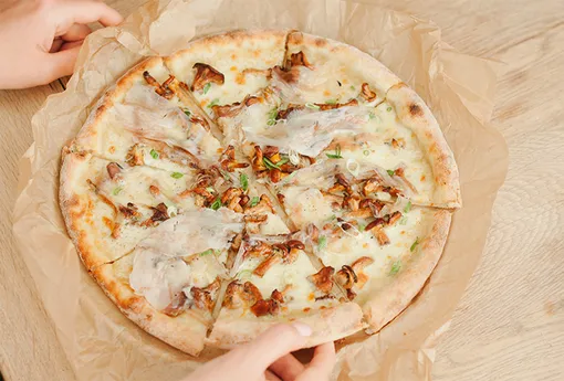 Пицца с лисичками и гуанчиале в ресторане Probka на Цветном бульваре