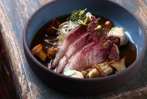 Хамачи с лисичками в Fish Chain