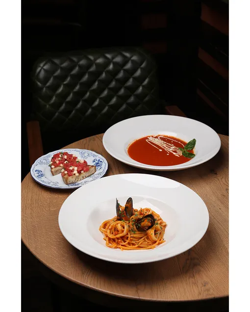 В элегантном и стильном ресторане Salumeria на «Римские каникулы» настраивает не только фестивальное меню, но и знаменитый фильм с Одри Хепберн на экране. Вы можете любоваться игрой актеров и пробовать идеальную буррату с вялеными томатами и традиционную мясную лазанью. Фестивальный коктейль здесь – один из самых красивых и вкусных. Цена сета – 1500 рублей.