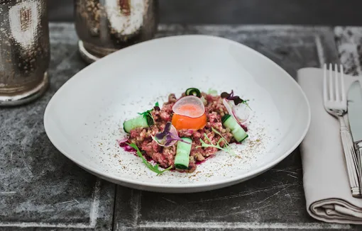 Поразительно, но в петербургском «Блоке» чуть ли не в первый день работы ресторана мы сполна получили самый услужливый и тактичный сервис, который я встречал за последние несколько месяцев. И сопровождал этот сервис самое лучшее мясо якобы российского происхождения, которое я когда-либо пробовал. Первым на стол прибыл тартар из говядины с трюфелем –единственное блюдо того ужина, которым я не то чтобы остался недоволен, а всего лишь немного приглушил бы аромат агрессивного гриба, который только мешал раскрыть достоинства прекрасного мяса. Каждое из последующих блюд было идеально: стейк «Муромец» – как минимум на троих, стейк мясника – диафрагма, вырезка «Квазимодо», мурманский гребешок в медовом соусе, печень налима с луковым мармеладом и салат с краснодарскими помидорами и ялтинским сладким луком. Все это непременно следует попробовать – и точка.