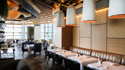 Crab Market открыли почти с восточной роскошью – стильное пространство занимает всю площадь 15-го этажа одного из бизнес-центров, так что вид на город почти круговой. Видно и башню Бурдж-Халифа, и залив. Вечерами, когда ресторан забит мужчинами в сшитых на заказ костюмах и до неприличия красивыми женщинами, включая тех, чья социальная ответственность могла бы быть и повыше, огни за окном создают впечатление, что ты на борту огромного лайнера.