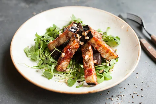 Салат со свеклой, баклажаном по-азиатски и рукколой от шеф-повара ресторана Brisket BBQ Алексея Каневского