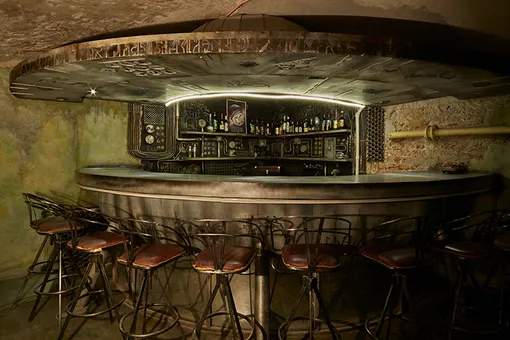 А самое главное, вся магия приготовления миксов от Никоса будет происходить в новом пространстве секретного бара «Kot Шрёдiнгера» — Room 5. Место очень прикольное и концептуальное. Это самая настоящая летающая тарелка со светящейся барной стойкой и соответствующим антуражем. Бар рассчитан всего на 10 гостей, места лучше бронировать заранее — с 20:00.