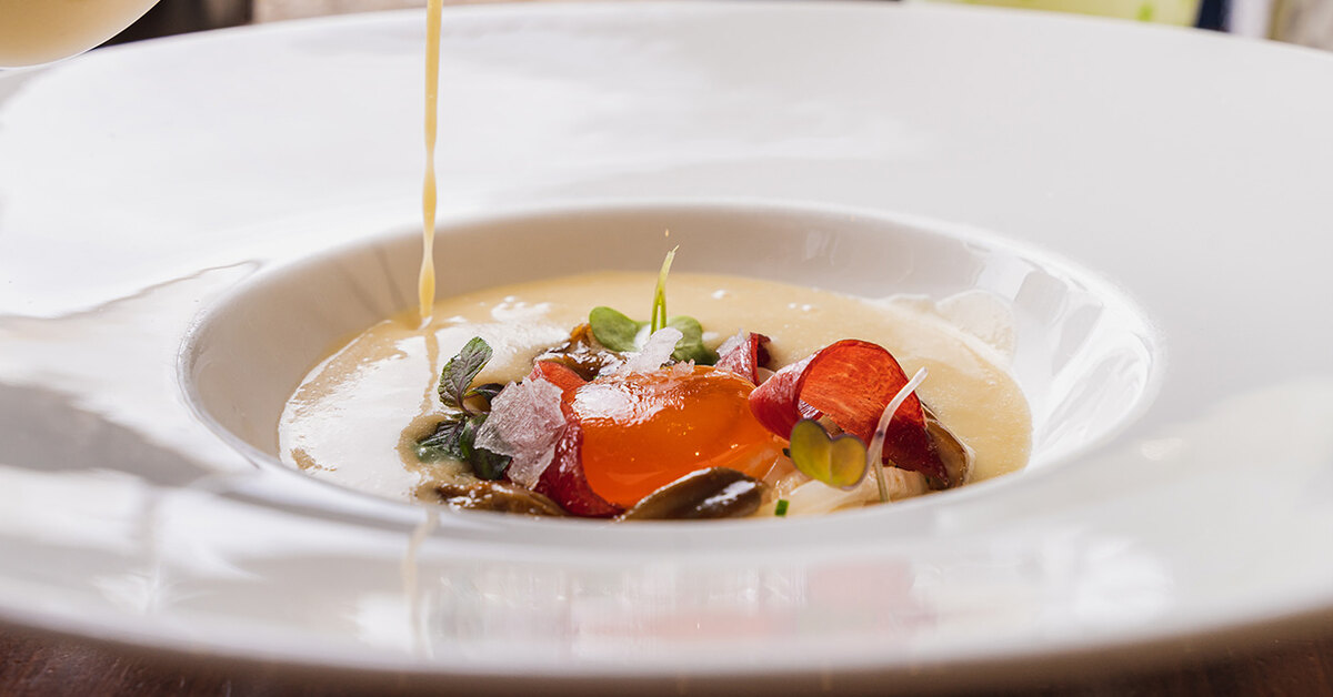 Сеты Адриана Кетгласа в Grand Cru – это отдельное удовольствие, и я все больше и больше начинаю его ценить. Февральский сет Адриану удался особенно — яйцо цесарки с кремом из сельдерея и трюфеля я вспоминаю до сих пор. Оно подается как суп, и вы не станете облизывать тарелку только из-за количества мужчин вокруг — в Grand Cru традиционно сильно присутствие большого количества интересных джентльменов. Второй тарелкой с таким же эффектом стала атлантическая форель с черным киноа, которая щедро поливается соусом из кокоса и кафрского лайма. Впрочем, остальные три подачи тоже выглядят феерично. И Grand Cru можно отметить как одно из мест, где не стоит пренебрегать предложением по винным парам, — я мечтаю снова попробовать Sancerre и токайское, что включены в этот сет. Надо, кстати, узнать, продаются ли они в тамошней винотеке.