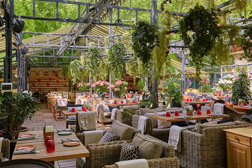 В ресторане Modus две летних веранды, и обе одинаково популярны: нижняя — крытая, если вдруг дождь, а верхняя, на крыше - с панорамным видом на всю Москву (там и установили огромный светодиодный экран, где показывают трансляции). А Андрей Колодяжный, новый шеф-повар Modus и самый знаменитый гастроботаник страны, придумал десерт — хит «Инстаграма (Социальная сеть признана экстремистской и запрещена на территории Российской Федерации)» в виде футбольного мяча Russia World Cup.
