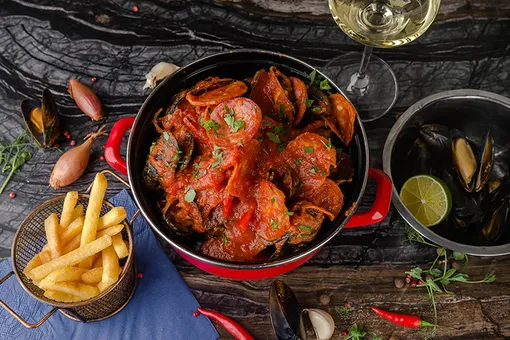 Самая модная пивная масселерия города отмечает свой первый день рождения. Отцы-основатели Виталий Передерко и Георгий Пхаладзе, а также итальянец Джанмария Сапия, который «бренд-шефит» здесь, подошли к вопросу серьезно: придумали 101 соус для мидий. Чтобы не запутаться, их разделили на категории: «сырные» (например, чеддер), «сливочные», «томатные» (рикотта/арабьята – идеально!), «азиатские», «сырно-фруктовые» (манго/бри и черника/шевр), «алкогольные» (бурбон, кленовый сироп, чоризо, сливки – превосходно), «овощные», «морская вода» и «непривычный вкус» (один из хитов — сгущенка/васаби). Главный же хайп — 11 февраля все мидии будут подаваться бесплатно, нужно только вовремя забронировать столик. Чем запивать морепродукты – тоже не вопрос: в заведении наличествует 16 пивных кранов и более 200 наименований бутылочного пива из разных стран.
