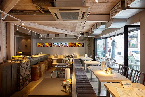Проект от команды Антона Баранова (Pharmacie Wine), едой Игоря Корнева и коктейлями Дмитрия Калистова открылся не в центре, а рядом с Молодежной, сразу на 2 этажа и 400 кв. м. Это два концептуально разных пространства: первый этаж Kano — классический «бар у дома», где упор в нём сделан на простую и понятную всем еду на каждый день (от стейков, рёбер до сэндвичей и индийских лепешек роти). Ресторан на втором этаже — результат взаимодействия северной и никкей кухонь. Для начала обязательно попробуйте сахалинский гребешок с соусом понзу-алоэ и филигранную утиную грудка с соусом из шиповника и морковью конфи. Минималистичный интерьер спроектировала команда Натальи Белоноговой, где по традиции много бетона, металла, дерева.