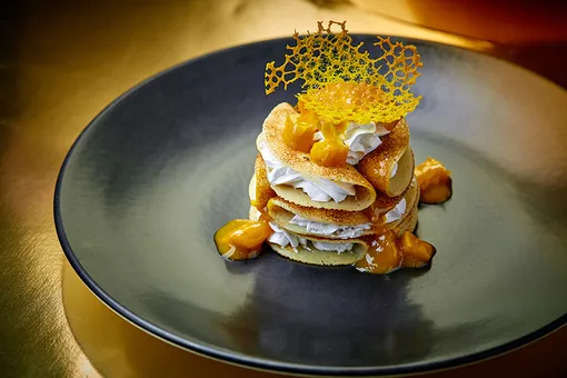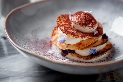 В итальянском Sartoria Lamberti русскую Масленицу переиграли на итальянский манер. Получились тонкие блины с муссом из рикотты со шпинатом, завернутые в форме каннелони, рагу из говядины с трюфельным соусом, сложенное в аккуратные равиоли, ярко-зеленые шпинатные панкейки с лососем и икрой, прослоенные сливочным муссом, а на десерт — хрустящее блинное тирамису.