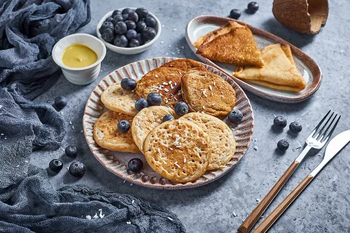 В сети «Город-Сaд» к Масленице предлагают веганские оладьи gluten free из муки зеленого банана и на основе мякоти кокоса и миндальной муки — такое нельзя не попробовать, даже если вы «антизожник». Впрочем, классические блины без сахара и блины со сладкими (без сахара) и несладкими начинками тоже имеются.