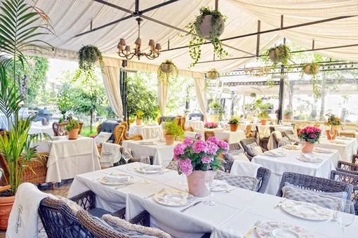 Веранду ресторана Butler принято называть самой красивой на Патриках, и заявление это не лишено оснований. Мало в каком ресторане можно смотреть футбол в такой вызывающе буржуазной и безупречной обстановке. И, что также довольно занимательно, на той же веранде, вернее сказать — в том же саду, можно найти места, где футбола будет вообще не видно и не слышно. Местный шеф-повар Джузеппе Дави — сицилиец — любит кормить гостей рассказами о рецептах своей бабушки. Впрочем, он готовит так безупречно вкусно, что самые влиятельные люди Москвы его бабушку любят уже заочно. Из летних хитов — гаспачо с сорбетом из запеченного сладкого перца (680 руб.), салат из камчатского краба и авокадо на гриле с йогуртовым соусом под лепестками из зеленых яблок (860 руб.), а также равиоли из кролика конфи с фундуком, пармезаном и пюре из корня сельдерея (870 руб.)