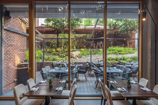 В самом модном русском ресторане города футбол смотрят на стильной веранде, больше похожей на модную скандинавскую дачу, чем на сибирский а-ля рюс. Вся светская Москва знает, что здесь самые вкусные в городе пельмени, но и в летнем меню есть немало хитов, включая сугудай из ленка с фруктовым чатни и десерт из ревеня.