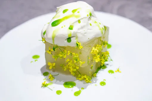 Все очень хвалят новый Cameo, который открылся на Маяковке во дворах Садового кольца, и меню тартаров у них интересное. Суп-тартар с брезаолой включает в себя огурец, редис, лисички и свежие травы (520 руб.), тартар из говядины с сердцем быка сервируют с пеной из водорослей и одуванчиками (550 руб.). В тартаре из свеклы с травами есть клубника и козий сыр, а тарелка украшена цветками настурции — кажется, съедобными, но это не точно (370 руб.). И еще есть тартар из дыни с мятой, украшенный ганашем из белого шоколада с лаймом и цветками сурепки (420 руб.).