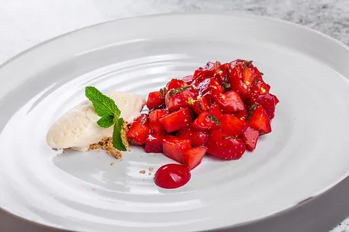 К каждому специальному меню Moscow Restaurant Week предлагаются коктейли Grey Goose, а к ним повара готовят Amuse Bouche — маленькие закуски, которые гости получают к коктейлю комплиментом. У Карло Греку, шеф-повара «Карлсона», таким Amuse Bouche стал дальневосточный гребешок c виноградом и яблочным соусом. Тартар из томатов «Бычье сердце» с киноа здесь подают на «ремесленном» хлебе (530 руб.), тартар из тунца на обожженном авокадо оттеняют халапеньо (970 руб.), а тартар из подкопченного атлантического лосося сервируют с битыми огурцами (930 руб.). Тартар из мраморной говядины black angus обойдется в 690 руб. И наконец, клубнично-ананасовый тартар с йогуртовым муссом и тапиокой (470 руб.) станет отличным завершением обеда или ужина.