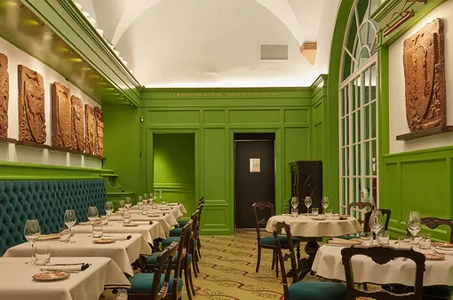 Попасть в ресторан можно только через сам бутик. Это отвлечет вас на бесконечные майки, коробки, тапки, книжки и коробки спичек за 20 евро с масонским глазом на каждой розовой поверхности. Такой же глаз ожидает вас на меню, в котором вы найдете как ожидаемые от остерии тортеллини и равиоли, так и тостада с севиче и булочки бао. Чаще всего заказывают бургер «Эмилия» с котлеткой из колбасы котекино, который подают в коробке все того же жизнеутверждающего розового цвета на идеальной посуде к безупречной сервировке стола. Впрочем, это минимум, который можно ожидать от коллаборации Алессандро Микеле и Боттуры. Еда остроумна и «инстаграмна», каждое блюдо стоит порядка 30 евро, а в заведении с момента открытия в январе перед выставкой Pitti Uomo стабильно аншлаг. Идеальный коммерческий проект!