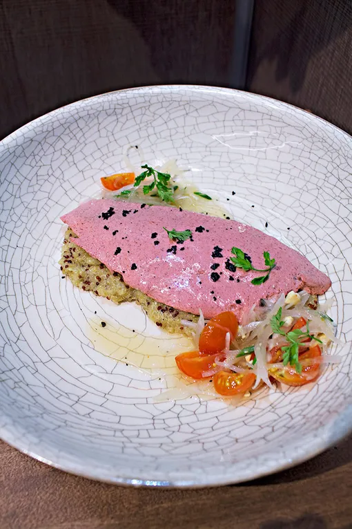 Сибас в тандури с киноа + белое полусухое вино из винограда «тиморассо», Пьемонт (2015 год) или шардоне из Бургундии (2016 год)