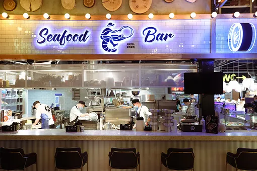 На Усачевском рынке открылся первый SeaFood Bar — флагман будущей сети Роберта Харви Стабблбайна, владельца фермерских хозяйств «Крымские морепродукты» и «Русская креветка». Собственно, вокруг них и будет построено меню. Блюда SeaFood Bar готовятся из собственных продуктов, что положительно сказывается на ценнике. Свежайшие морепродукты плюс доступные цены — концепция у SeaFood Bar не новая, но понятная и привлекательная. На кухне экспериментирует концепт-шеф Виктор Белей (UHVAT). Сырые устрицы он сервирует с малиновым понзу и авокадо или с сорбетом из томатов и базиликом, запекает их с карри или чеддером и под соусом «Рокфеллер» и даже готовит из них фирменный суп. Заходите на обед или пораньше утром на завтрак: в SeaFood Bar, помимо всего прочего, еще и пекут собственный хлеб.