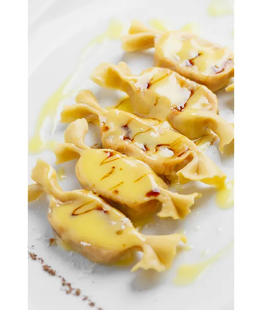 Я давно попала под очарование этого проекта Арама Мнацаканова на Цветном. И у них, как в любимых домашних тратториях в Италии есть свои традиции. Вот с осенью в меню вернулись знаменитые Карамелле с тыквой (850 руб.). Домашняя паста, или pasta fresca, как принято говорить в Италии, и впрямь имеет форму конфет, с начинкой из тыквы и пармезана, в соусе из сливочного масла, пармезана и капельки выпаренного бальзамика. Говорят, что некоторые приходят специально на это блюдо. Я бы тоже посоветовала.