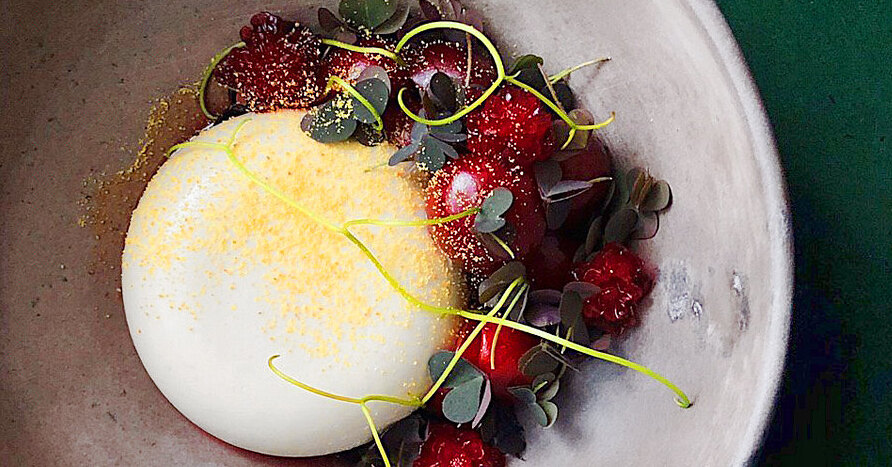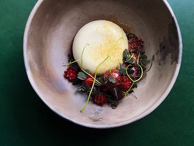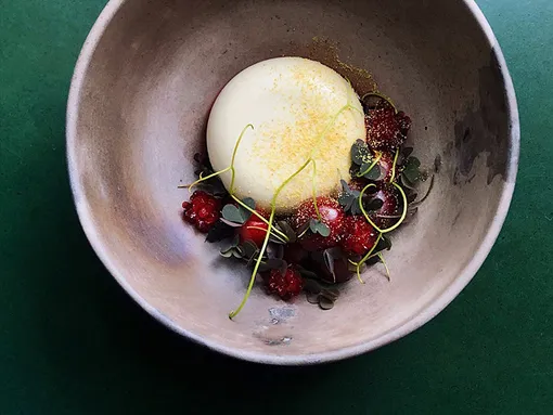 В меню вечера: молодой горошек со спаржей и черными лисичками, квас из крапивы с сыром чанах, мушмулой и спаржей, копченая утка, черешня и много съедобных цветов – цветами Андрей и Максим украшают практически каждую подачу.