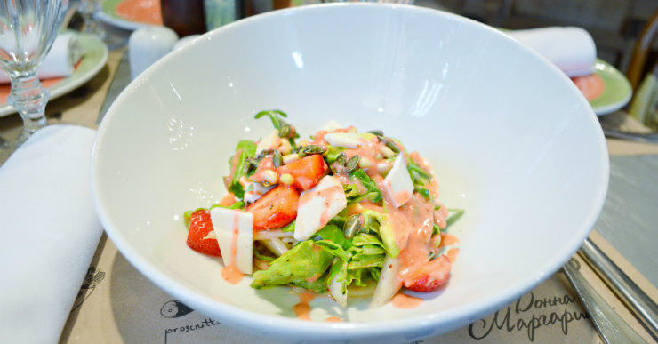 Рецептом самого летнего салата поделился ресторан «Донна Маргарита». Именно там его можно попробовать в исполнении профессионального шеф-повара Паоло Бокколини. Также советуем обратить внимание на специальное меню с блюдами из лисичек — сезон этих чудесных грибов как раз в разгаре.