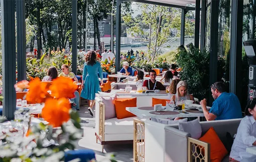 Любоваться салютом непосредственно за ужином можно будет с панорамных застекленных террас заведения. Кроме того, есть открытая смотровая площадка, расположенная на высоте 33-го этажа. Будет живая музыка, а для поднятия настроения на основе органик-водки «Чистые росы» и «Спельта» станут смешивать три органических коктейля. Среди них — «Мордовский мулл»: микс из органик-водки с мордовским медом, имбирным лимонадом, соком имбиря и лаймовым джемом. Шеф Buono Кристиан Лоренцини рекомендует для ужина блюда, которые подойдут к коктейлям - свежие морепродукты с рыбной витрины: морские ежи, лангустины, устрицы. Столик лучше резервировать, конечно.