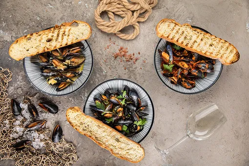 В Rose Bar запустили фестиваль мидий. Шеф придумал аж 7 соусов — от классических с белым вином до вариантов с трюфелем или икрой.