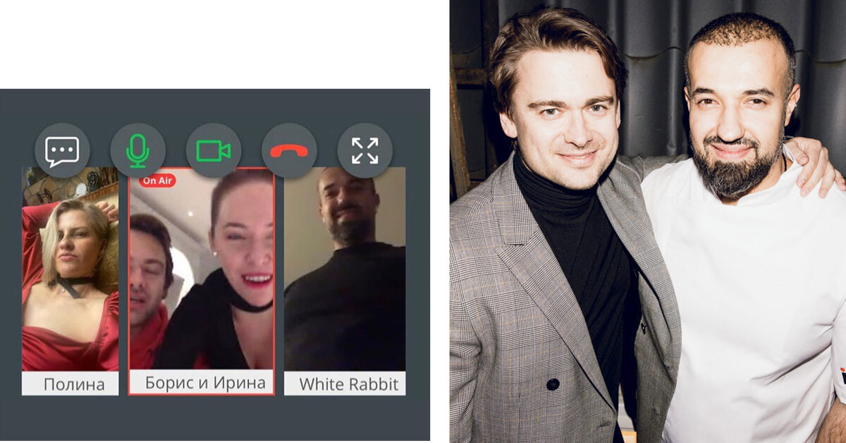 Борис Зарьков с Владимиром Мухиным не растерялись в сложившейся ситуации и запустили первый в стране онлайн-ресторан. Идея проста: вы можете поужинать в хорошей компании, оставаясь дома, а еду для вас приготовит лучший повар страны.